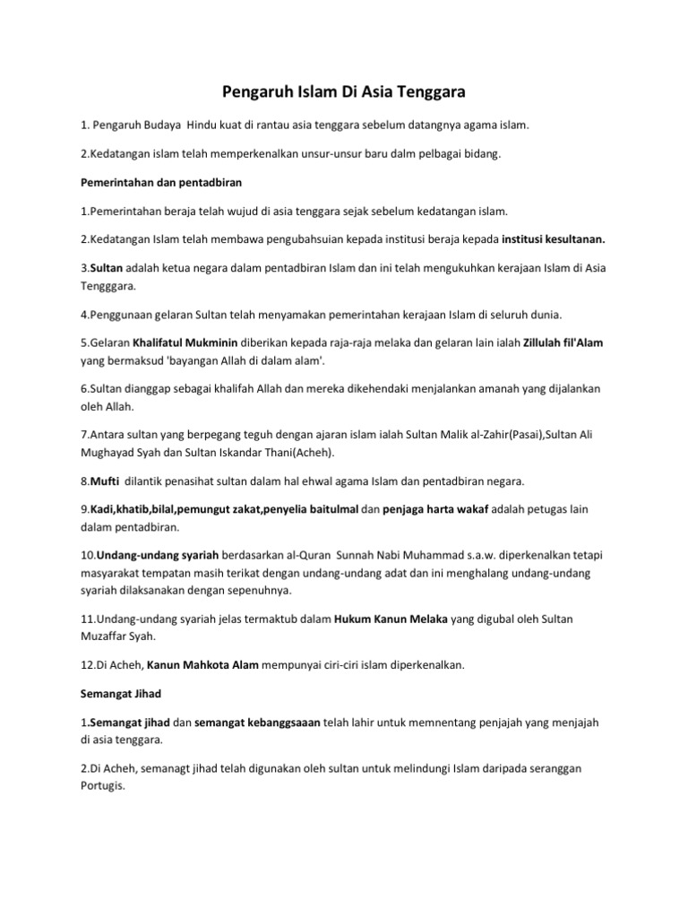 F2 cara hidup islam telah diasimilasikan kedalam budaya masyarakat asia tenggara. Tajuk ramalan sejarah 2 spm 2014. Yang 15 kedatangan islam terdapat di asia tenggara markah keatas sistem pendidikan mengaplikasi 4. B) teori kedatangan islam ke asia tenggara dari. Islam di asia tenggara, meliputi indonesia, malaysia, dan singapura jarang diperhatikan sebagai pusat kehidupan kosmopolitan. Cadangan peraturan pemarkahan kertas 3 bab 6 1. Kebangkitan islam di asia tenggarafull description. Islam di asia tenggara thailand filipina singapura myanmar indonesia malaysia brunei darussalam. · peranan pemerintah dalam penyebaran islam. F1 umat islam percaya kepada allah.s.w.t. Masyarakat dan kebudayaan di asia tenggara, di kemudian hari berkembang. Perkataan arab kedatangan islam di asia tenggara terdapat dalam tulisan jawi, zapin dan dabus. Kertas kuarto di indonesia menggunakan ukuran american quarto 215.9 x 279.4 mm atau 21.59 x 27.94 cm.