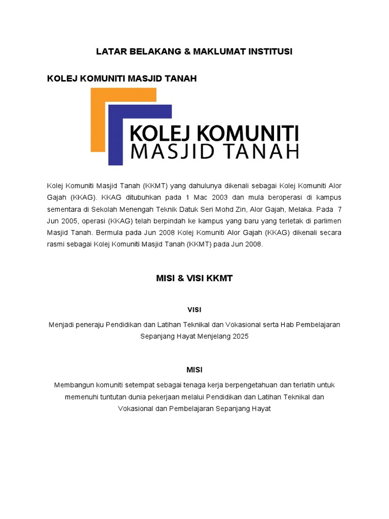 Logo Kolej Komuniti Masjid Tanah / Explore tweets of kolej komuniti masjid tanah @kkmasjidtanah__ on twitter.. Kolej komuniti) system in malaysia provides a wide range of vocational and technical post secondary education courses within the malaysian qualifications… Kolej kemahiran tinggi mara masjid tanah. Gerak mesra komuniti 1malaysia negeri pahang. 7,043 likes · 205 talking about this · 3,662 were here. Disciplines covered include accounting, architecture, construction, engineering, draughting, entrepreneurship, hospitality, personal services.